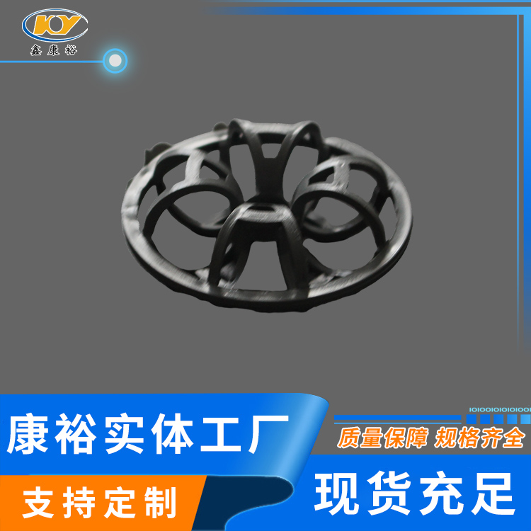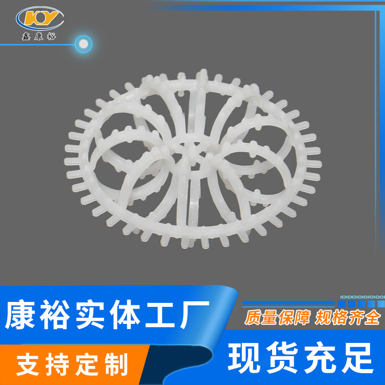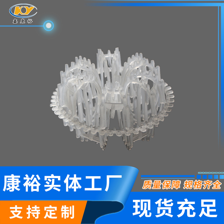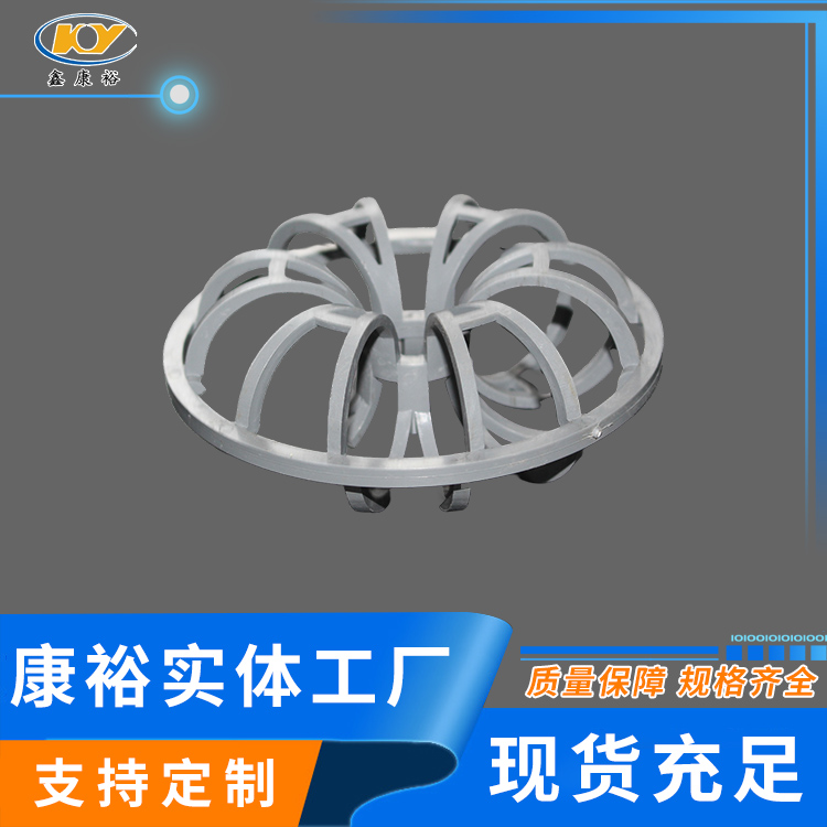 塑料花環(huán)填料早是由美國(guó)A.J.Teller于1954年研制開(kāi)發(fā)出來(lái)的,故而常稱(chēng)之為泰勒花環(huán)(TellerRosette)。由于填料的空隙處能有較高的持液量,可使塔內(nèi)液體的停留時(shí)間較長(zhǎng),從而增加了氣液兩相的接觸時(shí)間,提高了填料的傳質(zhì)效率?!』ōh(huán)填料也稱(chēng)梅花環(huán)填料塑料花環(huán)填料是由12個(gè)小圓環(huán)按徑向排列而組成的一個(gè)大扁球體,很類(lèi)似于一個(gè)螺旋形彈簧首尾相接繞成的一個(gè)圓球體。有的小圓呈A字;有的在小圓和大圓邊沿還帶有齒;有的外圍沒(méi)有大圓圈,只有里面的小圓組成等,客戶(hù)可根據(jù)各自的要求訂購(gòu)不同種類(lèi)的花環(huán)。
